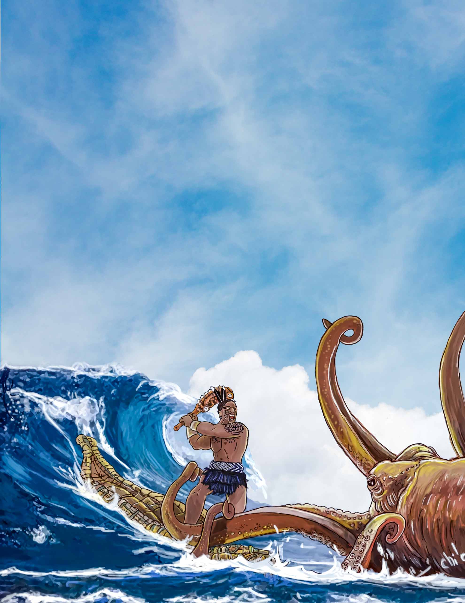 Figura 3. En la mitología Maori, Te Whekea- Muturangi era un pulpo monstruoso al que se enfrentó el navegante Kupe en la Bahía de Whekenui, Aotearoa. El wheke era una criatura salvaje y un guardián.