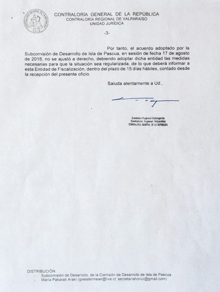 Claramente, este cambio es un retroceso en los procesos de autonomía del pueblo rapanui. Hoy, el gobierno, a través de la gobernadora provincial, nos presiona a firmar: “Les vamos a dejar terminar su período tranquilo hasta agosto 2020 , pero deben firmar el cambio al contrato de concesión.”
