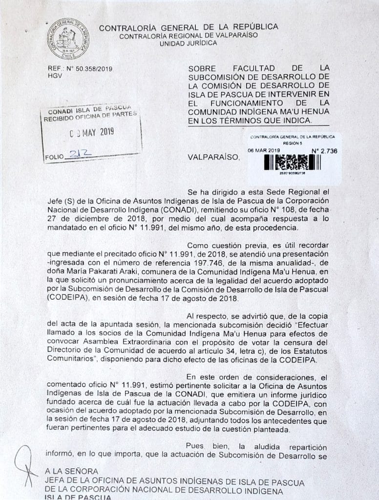 La formación de la Comunidad Indígena Ma’u Henua y la firma del contrato de concesión del Parque por 50 años, es considerado un avance en la verdad histórica y el nuevo trato entre el estado chileno y el pueblo rapanui. Esperamos que el pueblo rapanui y la nueva directiva de CODEIPA, recientemente elegida, exijan una votación para aceptar o rechazar la modificación del contrato de concesión firmado por la Presidenta Michelle Bachelet.